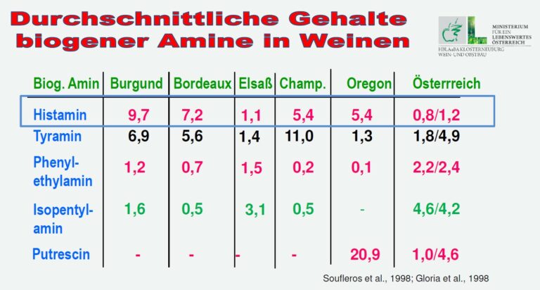 Histamin ist ein biogenes Amin und entsteht entweder bei biochemischen Prozessen oder bei der Lagerung und „Reife“ des Weines.