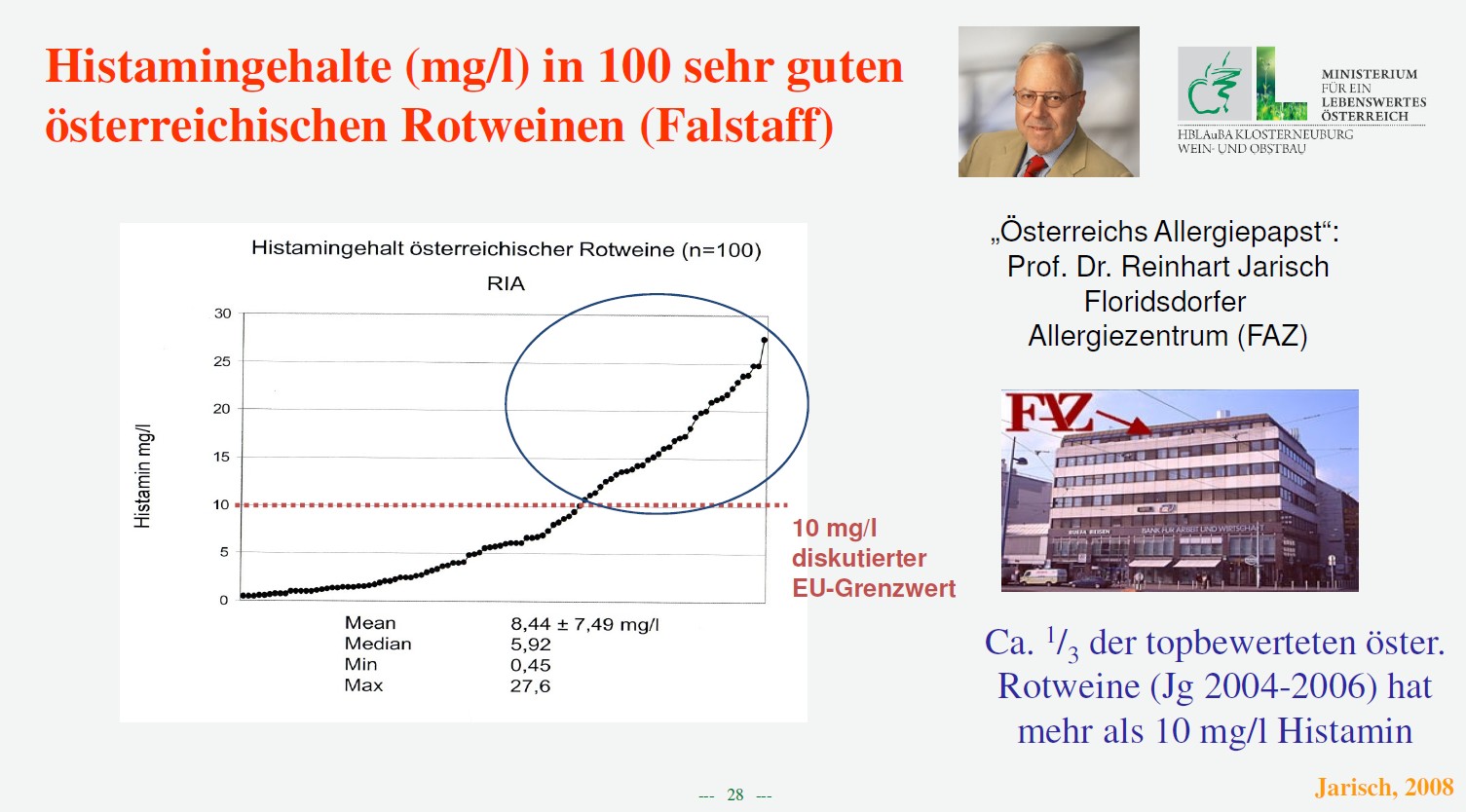 Daher sollte beim Testen von histamingeprüften Weine vor dem Konsum eine 12 Stunden Diät eingehalten werden, um eine Beeinträchtigung vom Wein auszuschließen.